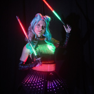 We have just tested our new costumes and pixel poi together. It is relatively difficult to capture the two at the same time without having to do a composite image.